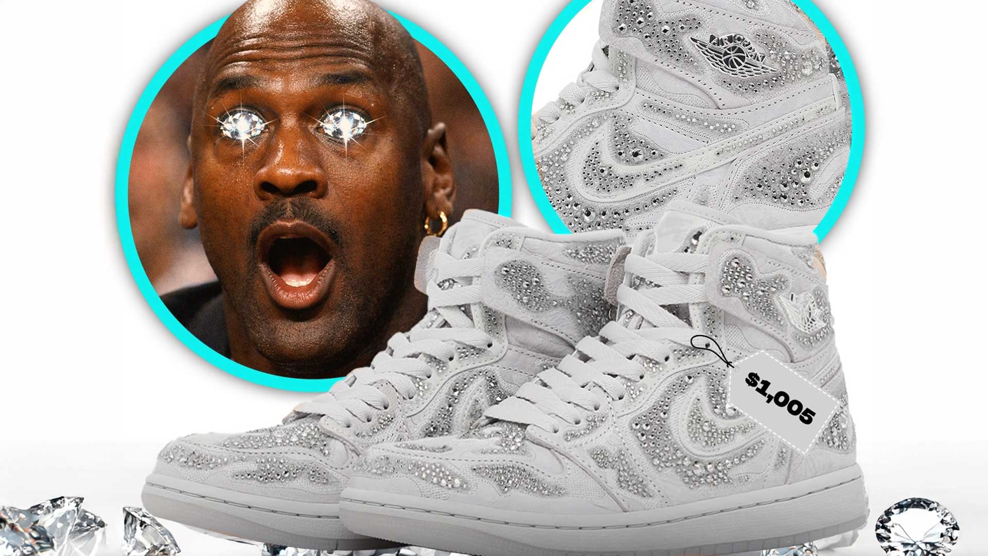 As for the upcoming Jordan 1 High pair, it’s a little underwhelming. The entire shoe is covered in monochromatic grey tones, and the duo has chosen a patchy application for the gemstones.