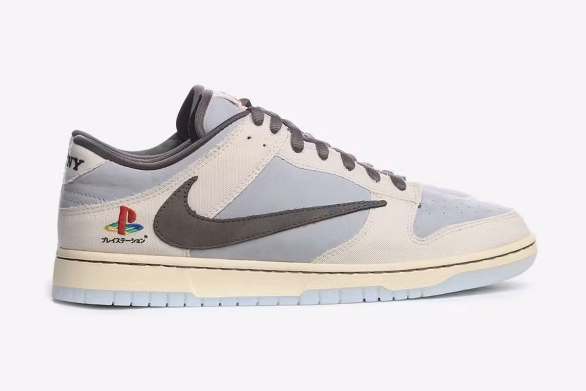 In case this sneaker has slipped under your radar, let’s bring you up to speed on this highly prized piece. Back in 2020, Travis Scott and Nike joined forces with PlayStation to craft a special edition Nike Dunk in celebration of the PS5 release. Rumour has it that only 24 pairs were produced, with five handed out to lucky fans via a raffle and the rest going to friends and family.
