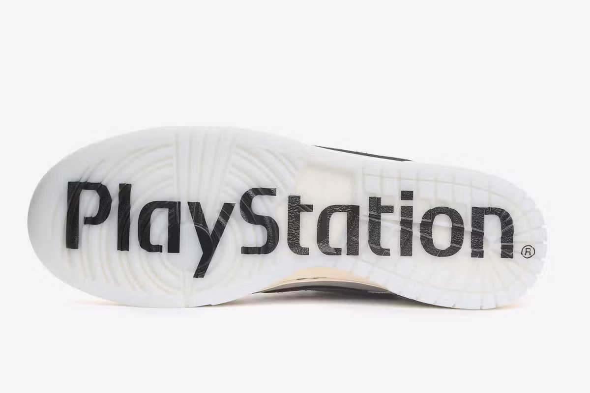 From there, charcoal grey reverse Swooshes, matching inner linings, and laces add a unique touch. But not to be missed are the Sony branding on the heel tab, PlayStation embroidery on the side of the heel, and the transparent outsoles below.